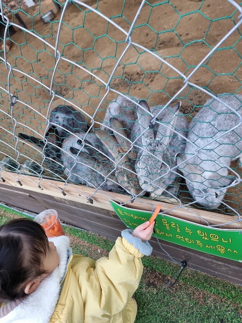 토끼에게 당근주는 아기🥰