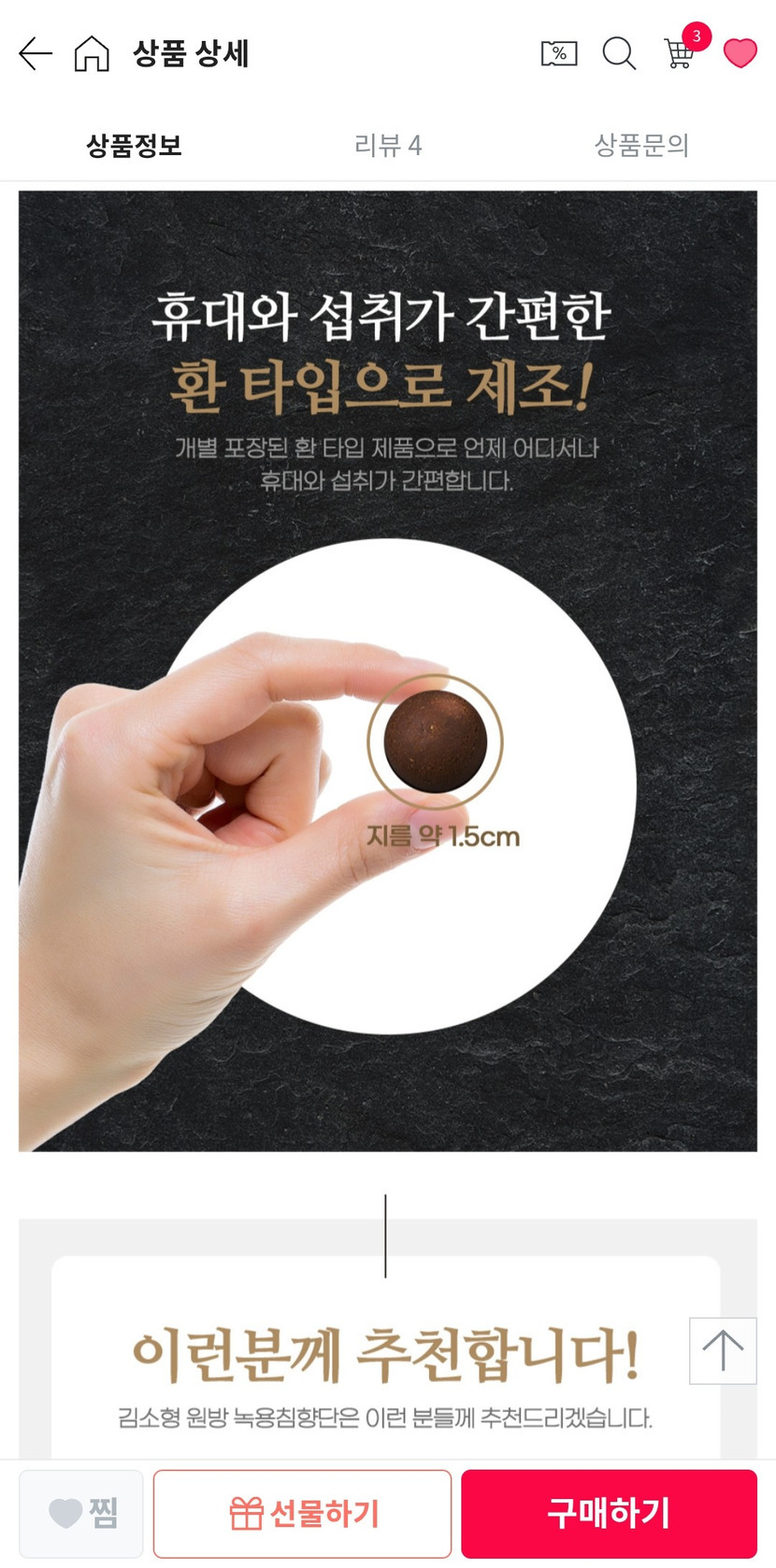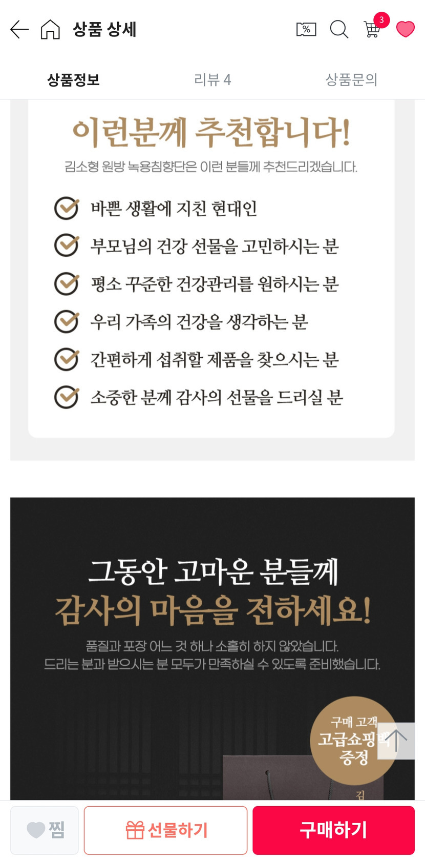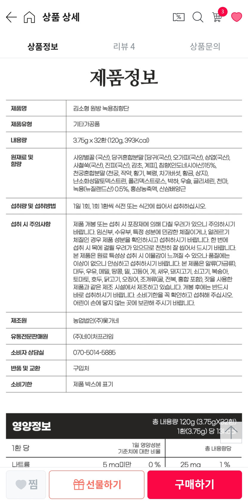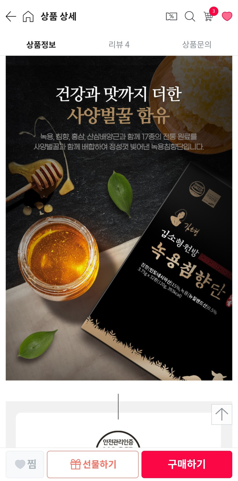 26.01.12 4,056 읽음 김소형 원방 녹용침향단 구입후기 천상무봉 구독하기 16 33 콘텐츠의 수익 344 함유된 성분이 좋이....어머님 효도선물용으로 좋아요. 적극추천합니다. 33 0 / 300 입력