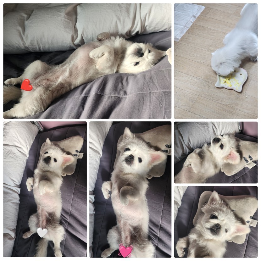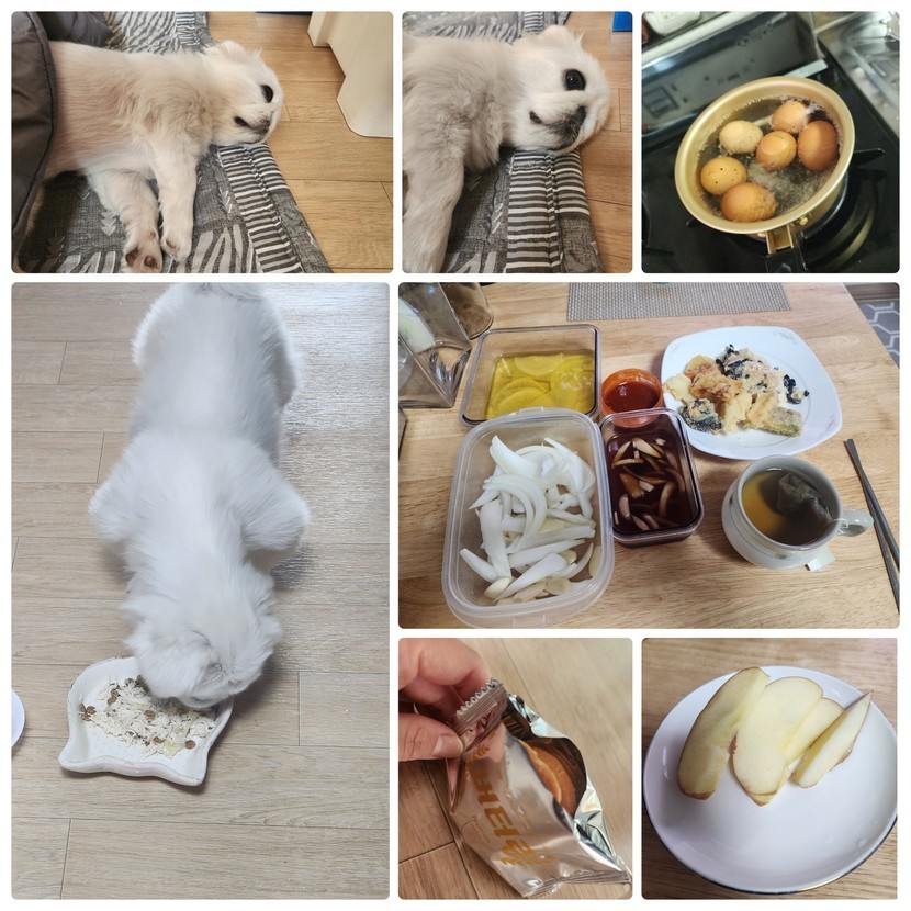 미소🐶🥚계란밥🍚먹고😋뻗음😪