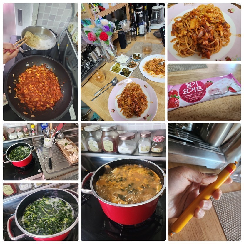 된장국🫘끓이고🍲간식 소시지🥓