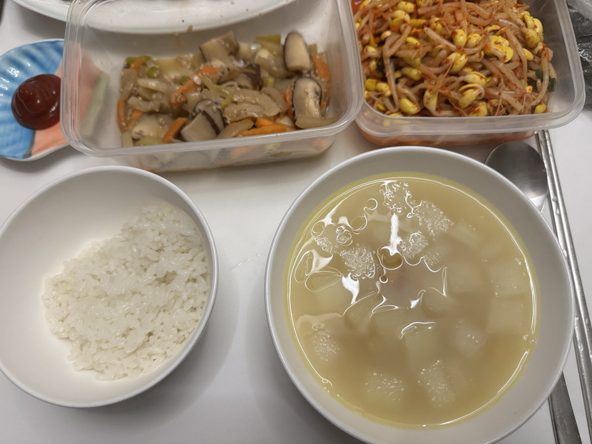 황태무국 끓이고 밑반찬이랑 냉동 구워서 근사한 한끼😁