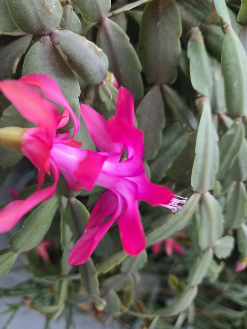 게발선인장이 기다람 끝에 이쁘게 피었어요