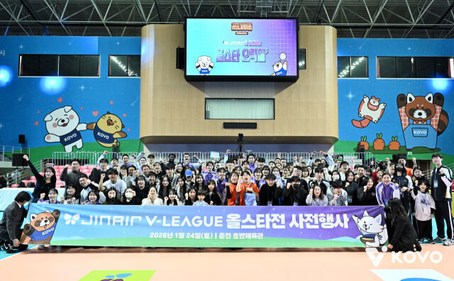 진에어 2025~2026 V-리그 올스타전 사전행사가 24일 춘천 호반체육관에서 진행됐다. 이날 행사에는 팬 80명과 올스타 선수들이 함께 모여 MT 느낌의 레크리에이션을 즐기며 올스타전을 하루 앞두고 화기애애한 분위기를 연출했다.
