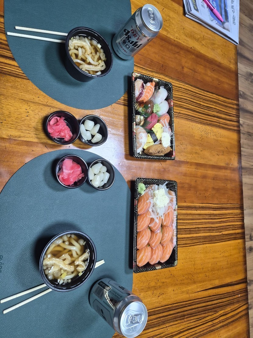 외출하고 돌아오는길에 초밥포장~~