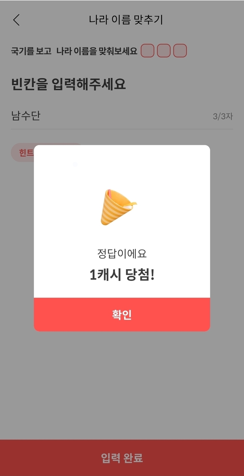 캐시피드 나라 이름 맞추기 완료 ~~