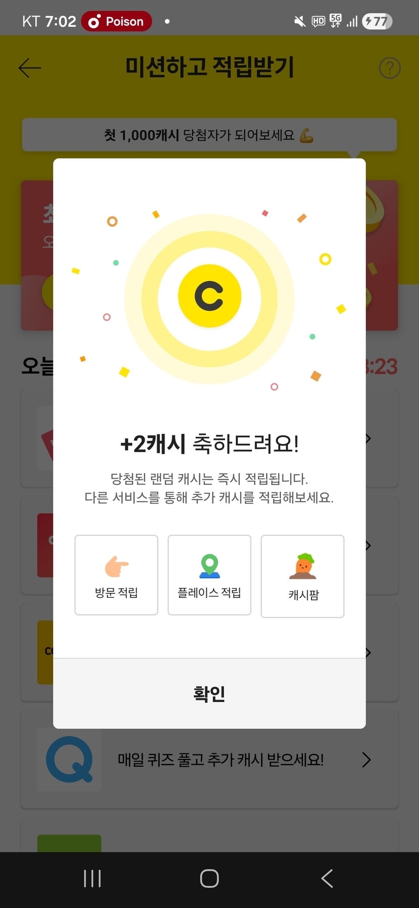 캐시슬라이드 운세 보고 적립 완료 ~~