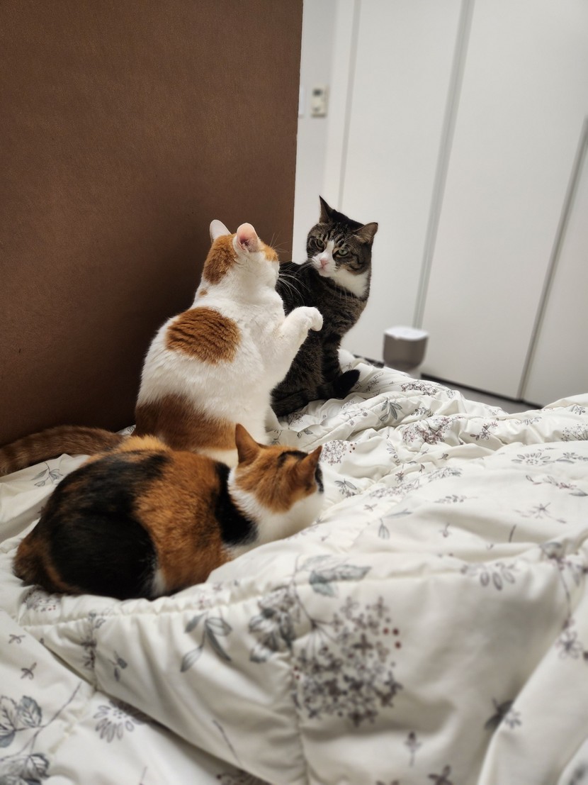 오늘은 셋이 같이 있는데 난이가 파랑이에게 급 냥펀치~ 😢
