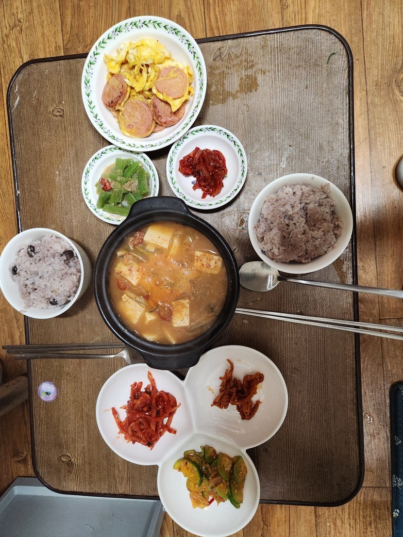 분홍소시지와 궁채해서 맛있게 먹었어요~