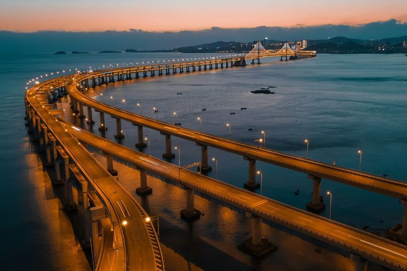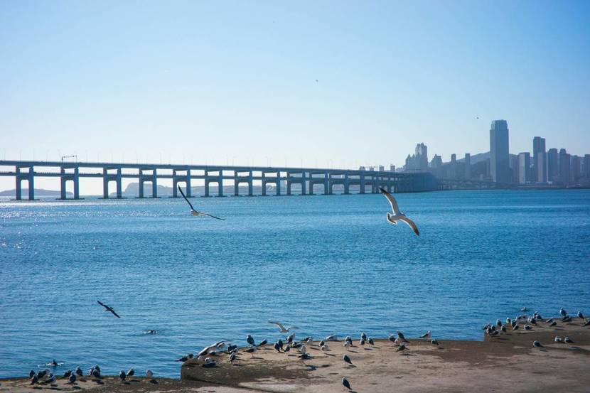성해광장 앞바다를 시원하게 가로지르는 이 다리는 중국 최초의 2층 현수교이자 대련에서 가장 아름다운 야경을 선사하는 곳입니다. 총 길이가 약 6km에 달하며, 밤이 되면 다리를 따라 설치된 수만 개의 LED 조명이 형형색색으로 빛나며 바다 위로 환상적인 빛의 길을 만들어냅니다.