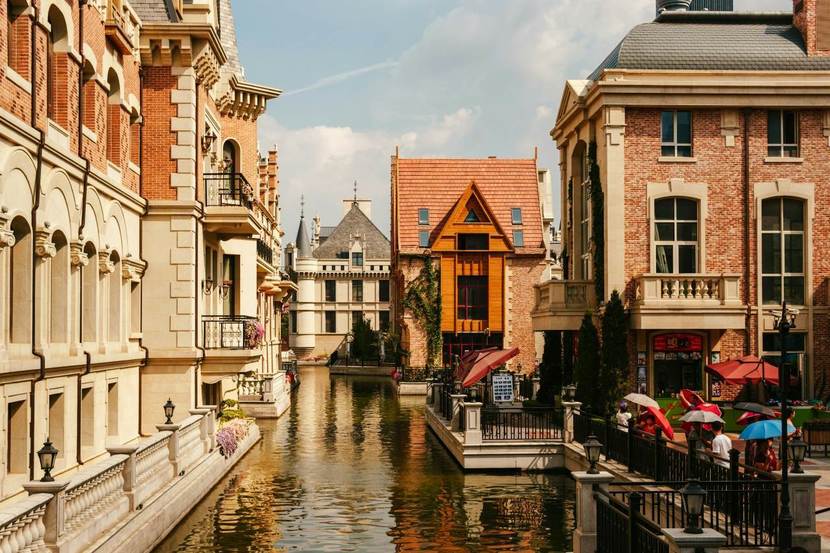 이탈리아 베네치아를 모델로 만든 인공 운하 마을입니다. 유럽풍 건축물 사이로 흐르는 물길을 따라 곤돌라가 떠다니는 모습은 이곳이 중국이라는 사실을 잠시 잊게 만들 정도죠. 특히 야경이 아름답습니다.