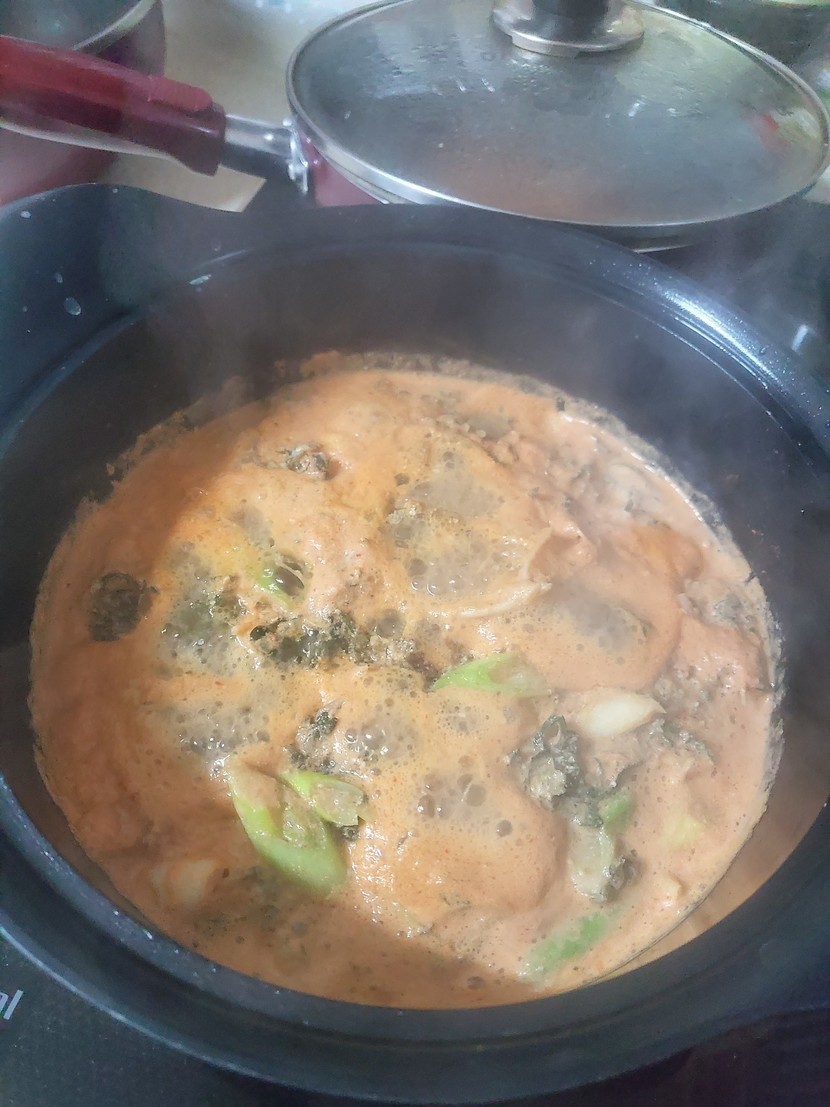 콩가루 묻혀서 냉이국 끓였네요