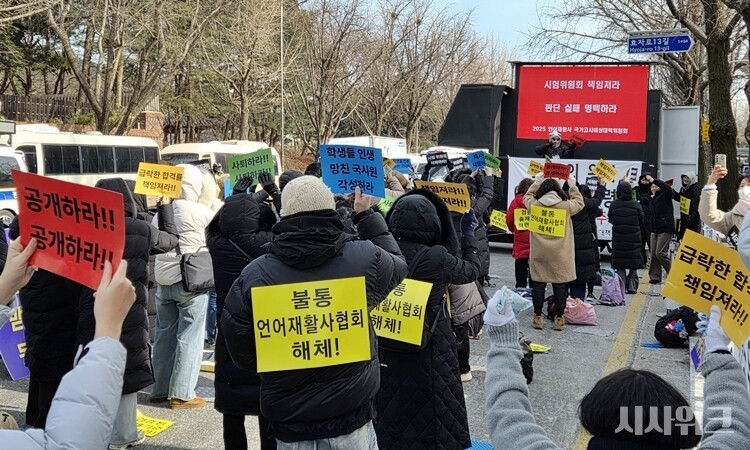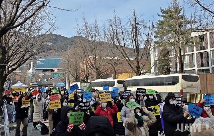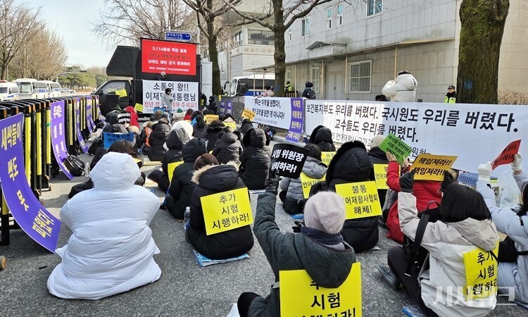 언어재활사 국가시험 비상대책위원회(이하 비대위)가 30일 정오(12시) 청와대 앞에서 ‘2025년 제14회 언어재활사 국가시험 추가시험 촉구’ 집회를 개최했다. 이날 집회에는 영하권의 엄동설한에도 불구하고 언어재활사 시험 응시생과 대학교 언어치료학과 교수 등 100여명이 참석해 추가시험 필요성에 대해 호소했다.