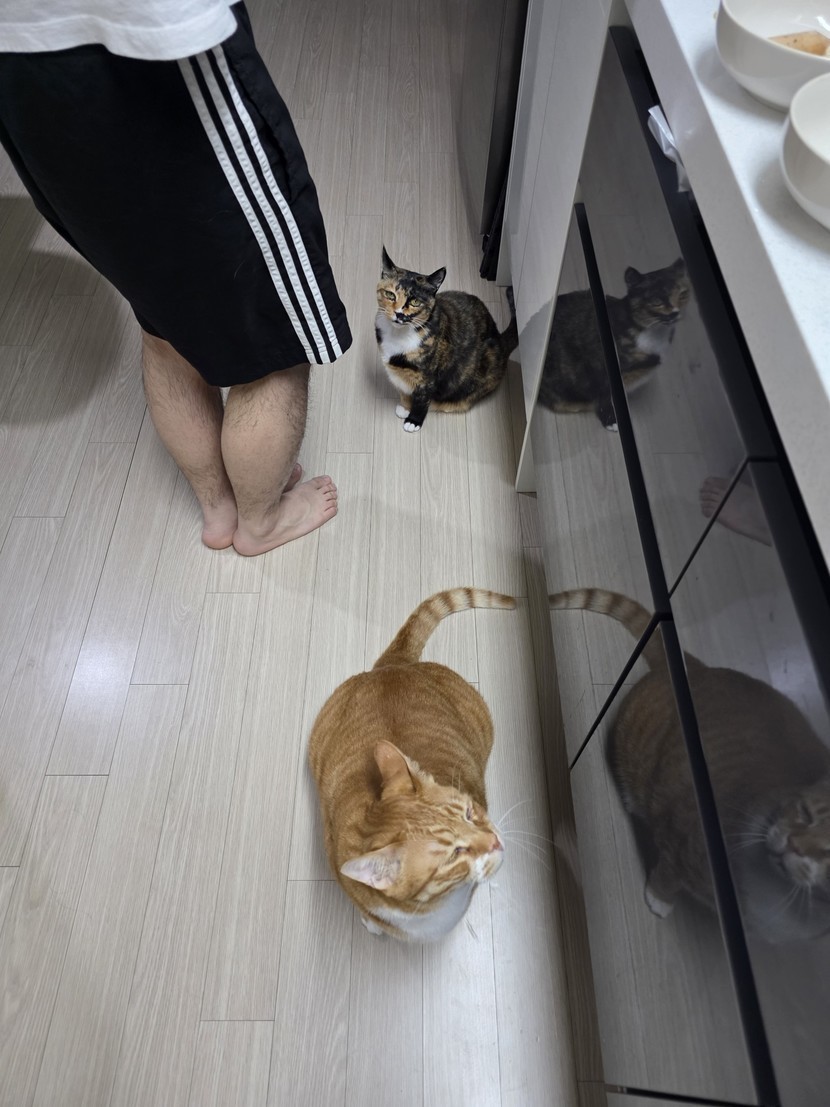참치 기다리는 호순이와 노랑이