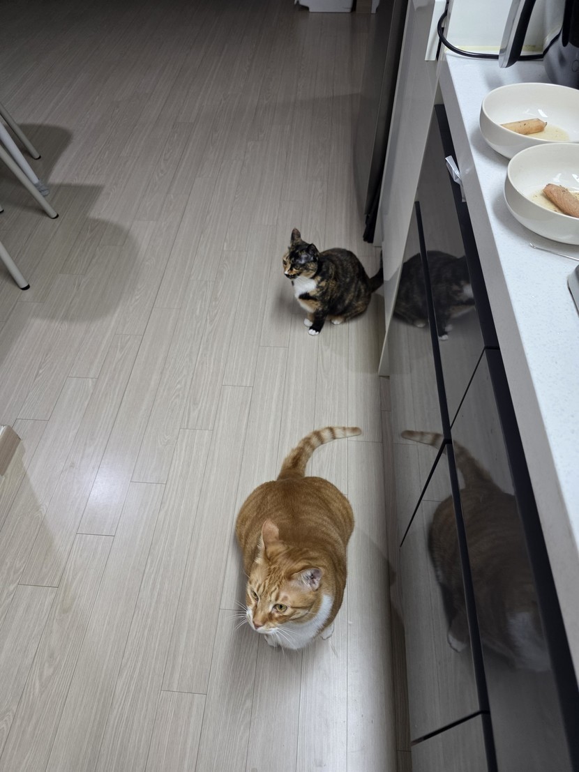 참치 달라고 재촉하는 노랑, 호순.