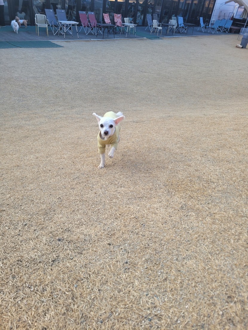 애견카페에서 신나게 뛰는 구름이