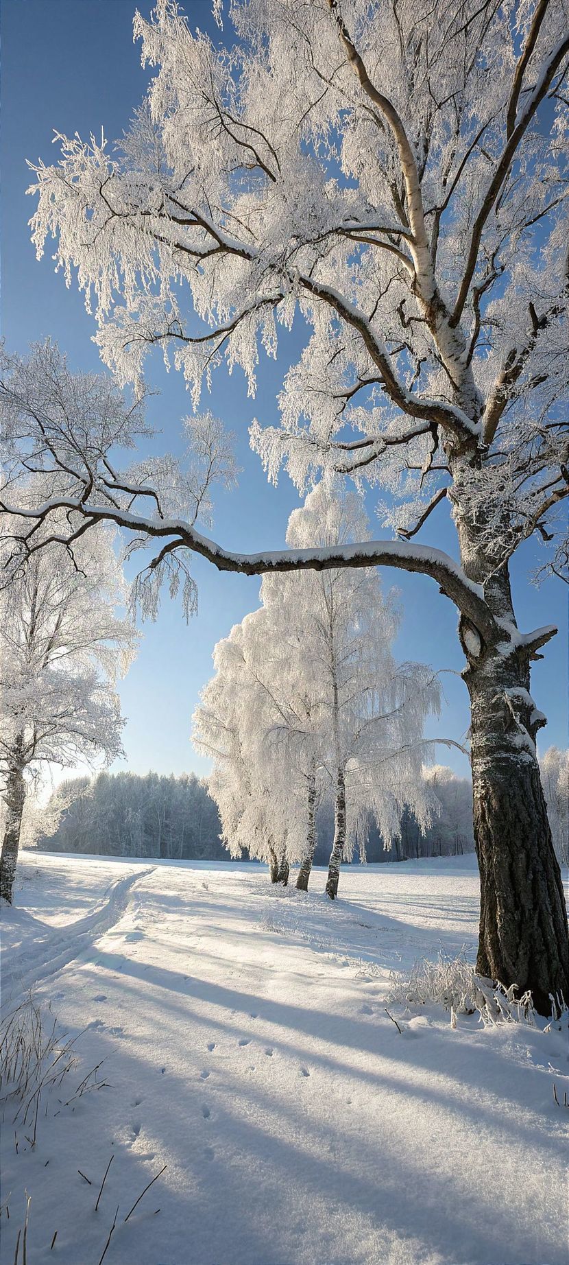 서리 내린 나무의 아치 아래에서, 🌳
