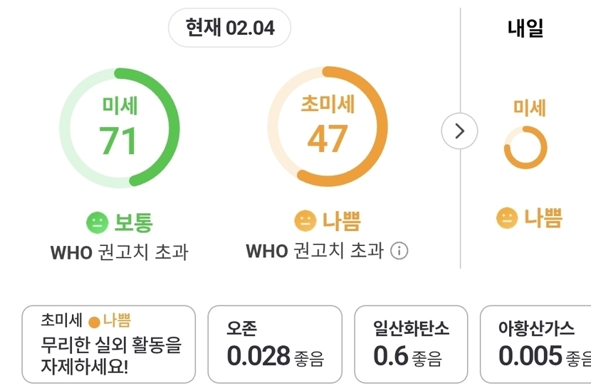 미세는보통~.초미세는 나쁨으로 ~