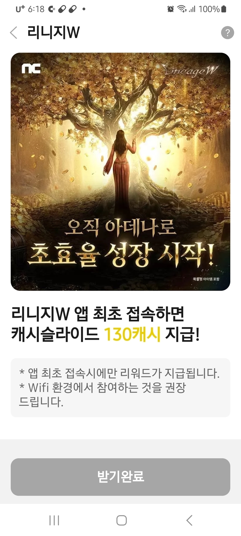 리니지W 앱 최초 접속하고 130캐시