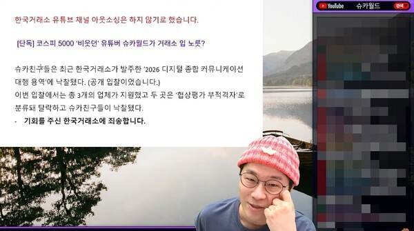 ‘코스피 5000 조롱’ 보도에 슈카 “한국거래소 홍보대행 포기”