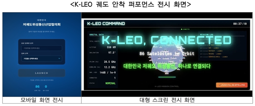 특히, 이날 출범식에서는 협의회의 비전을 시각적으로 구체화한 ‘K-LEO 궤도 안착’ 퍼포먼스가 진행되어 눈길을 끌었습니다. 김일동 차장을 비롯한 86개 기업 대표들이 스마트폰을 활용한 인터랙티브(Interactive) 발사에 참여하여 ‘대한민국 저궤도위성통신체계’라는 하나의 거대한 통신망을 형성하였습니다. 이는 ‘산업협의회’의 비전인 ‘민간 역량의 결집을 통한 최적의 K-LEO 체계 구축 및 기술자립 기반 마련’과 ‘국가우주산업 생태계 강화를 통한 글로벌 경쟁력 확보 및 수출 산업화 기여’를 상징하는 것입니다.