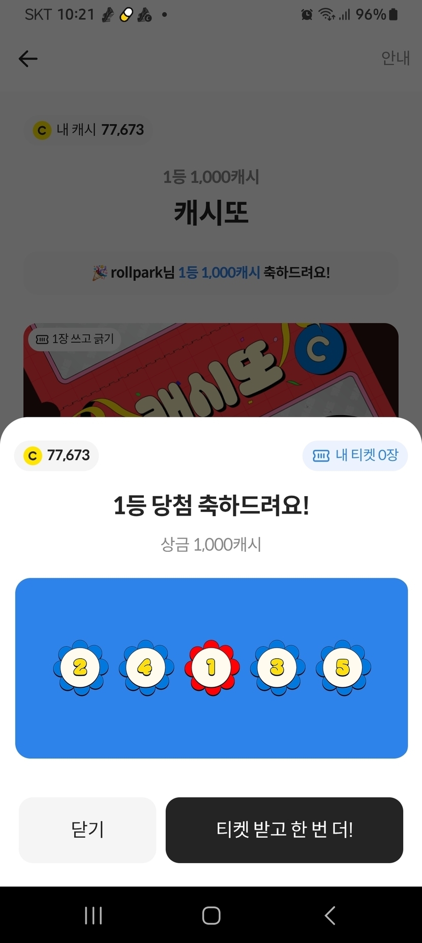 캐시또 1등 나왔어요