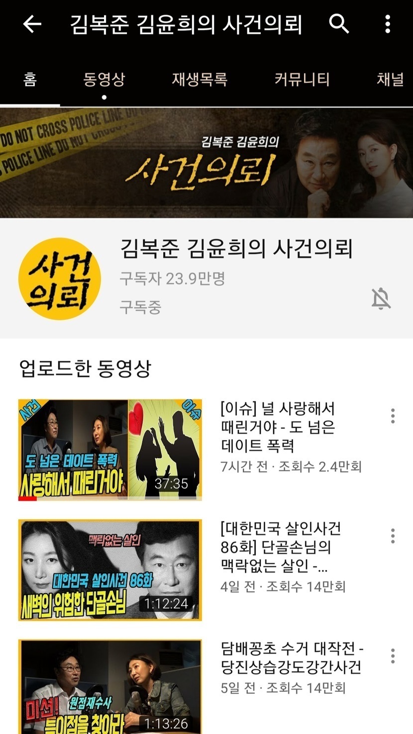 20.07.01 348 읽음 잠이 안와서 ㅠㅠ 보라해♡♡ 구독하기 30 46 콘텐츠의 수익 25 이거 다 먹으면서."김복준 김윤희 사건의뢰" 라는 유명 유튭을 봄.한국의 극악 살인사건의 전말들을전직 경찰출신 김복준님과 전 프로파일러 김윤희씨.두분이서 하는 방송인데 무섭고 화도 나지만너무 빠져 드는 방송임.. 46 0 / 300 입력