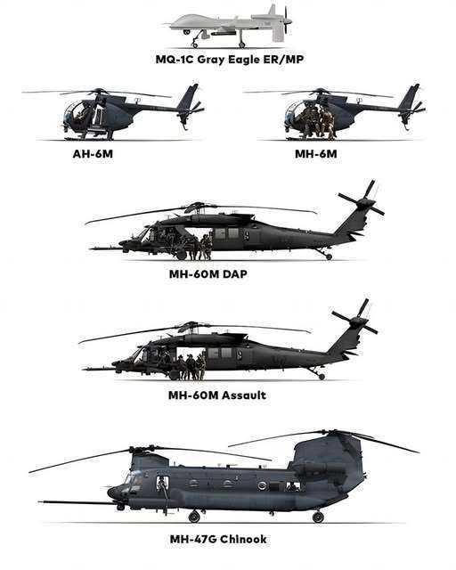 반면, 지난 ‘Op. Absolute Resolve’에 투입된 美. 특수전사령부 예하 160특수작전항공연대는 유인 강습헬기 이외에 중고도 정찰/공격용 무인기인 ‘MQ-1C Gray Eagle’과 무장헬기인 ‘MH-60 DAP(Direct Action Penetrator)’이 편성되어 있다. 전자는 특수작전항공편대에 원거리 정찰(속도 : 280 km/h, 운용 고도 : 8,840m, 비행시간 : 30H) 및 지상표적 제압(AGM-114 헬파이어 미사일 4발 등) 능력을 제공할 수 있다. 후자는 다양한 무장(19연장 Hydra 70 로켓 포드, AGM-114 등)을 장착하여 특수작전항공편대의 방호력을 강화할 수 있고, 얼마 전 수행된 ‘Op. Absolute Resolve’에서는 음파무기가 운용된 것으로 추정된다.