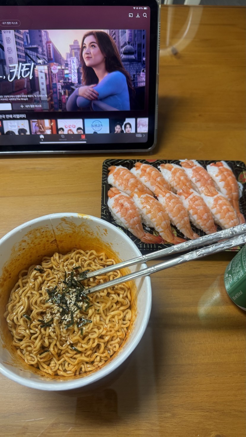 초밥이랑불닭볶음면💕💕💕
