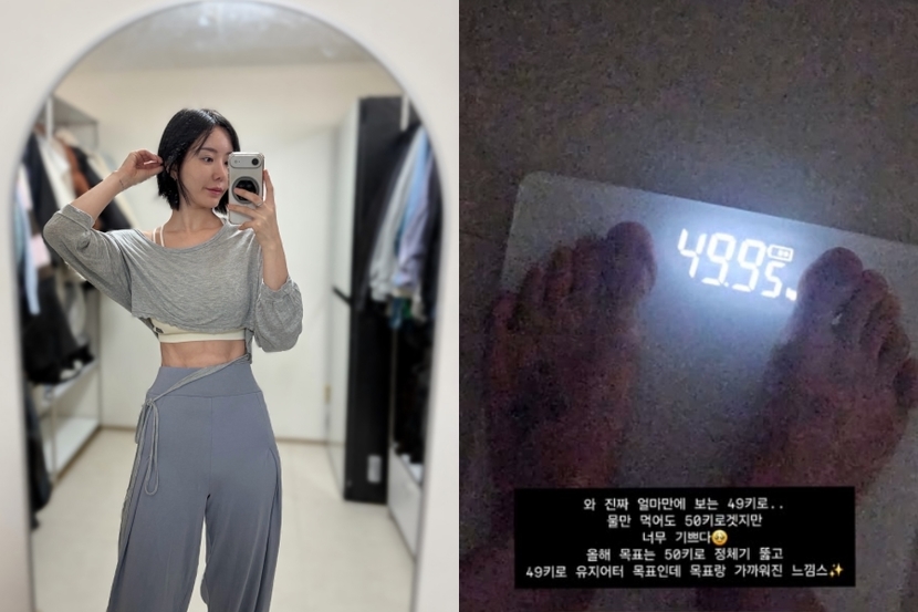 공개된 사진 속에는 '49.95kg'이 떠 있는 체중계 모습이 담겼다. 평소 꾸준한 운동으로 뭇 여성들의 워너비로 꼽혔던 이소라는 오랜만에 40kg대 체중에 진입한 것에 만족해하는 모습이다.