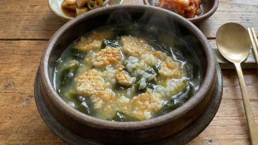 미역은 식이섬유가 풍부해 장운동을 돕는다. 혈액 건강에도 좋으며 항암 효과도 있어 몸에 이로운 식재료다. 여기에 누룽지가 더해지면 포만감이 조금 더 오래가고, 구수한 맛 덕분에 간을 세게 하지 않아도 만족도가 높다. 특히 기름진 음식에 지친 뒤나 속이 더부룩한 날에 부담 없이 먹기 좋은 조합이다.