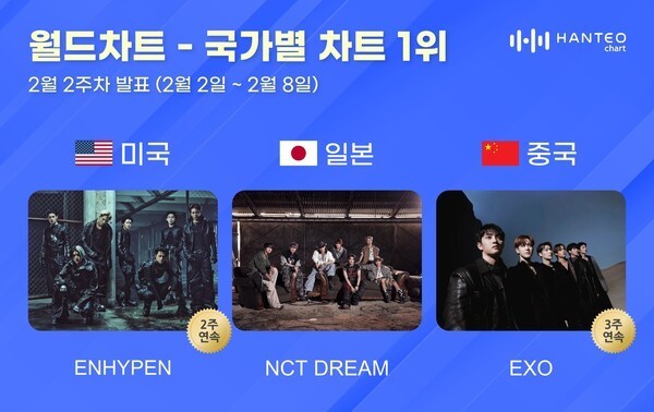 엔하이픈·NCT DREAM·엑소, 2월 2주차 한터 국가별 차트 1위