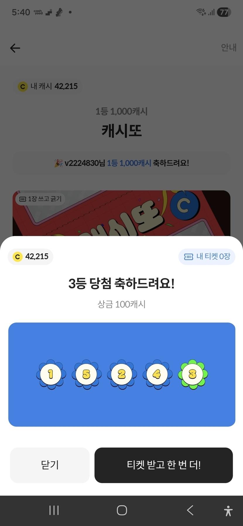 설선물 100캐시 복권당첨^^
