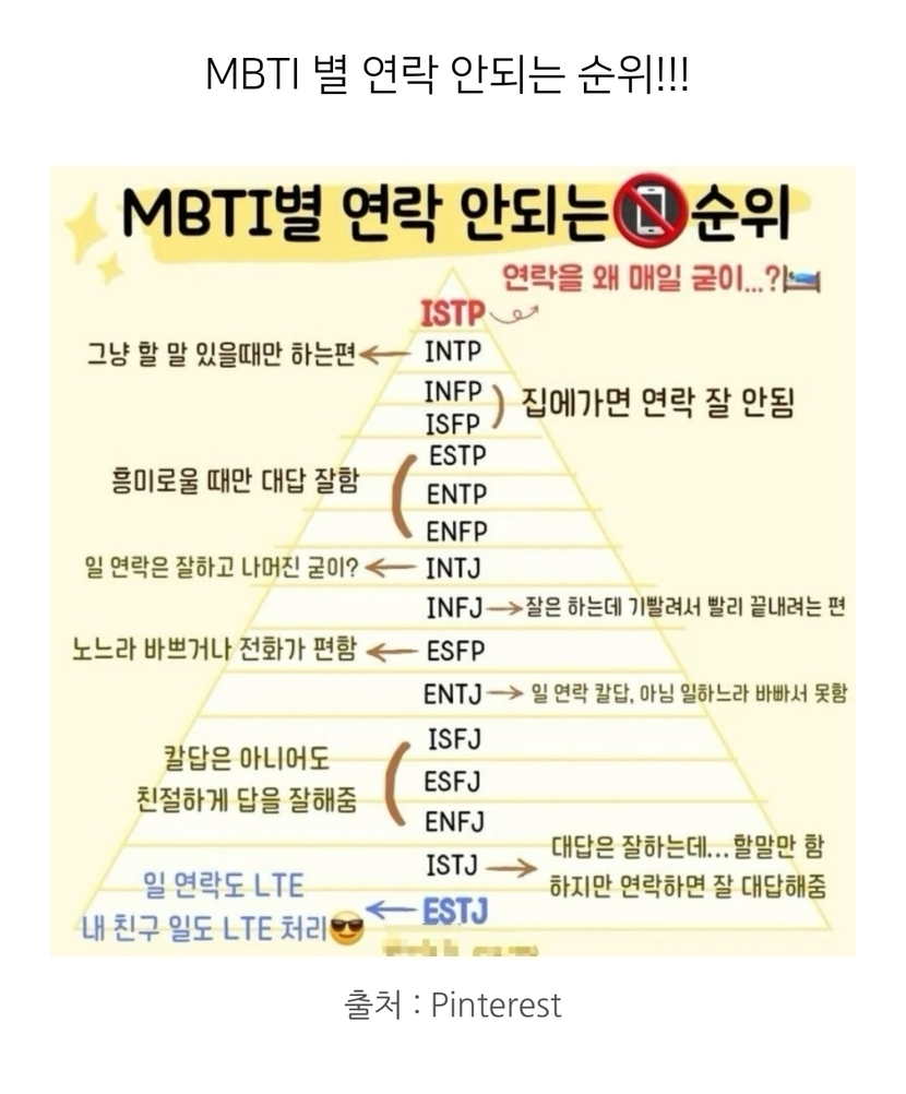인터넷 돌아다니다 mbti연락 안하는 순서를 봤는데요~~