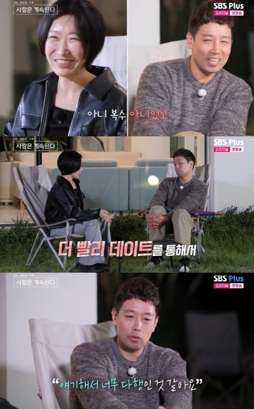 미스터 킴은 용담도 자신과 비슷한 얘기를 하고 있었다는 것에 흡족해했다. 용담은 둘이 더 빨리 데이트를 할 수 있었다고 말했다. 미스터 킴은 이제라도 이렇게 된 것이 잘 된것 같다고 말했다.
