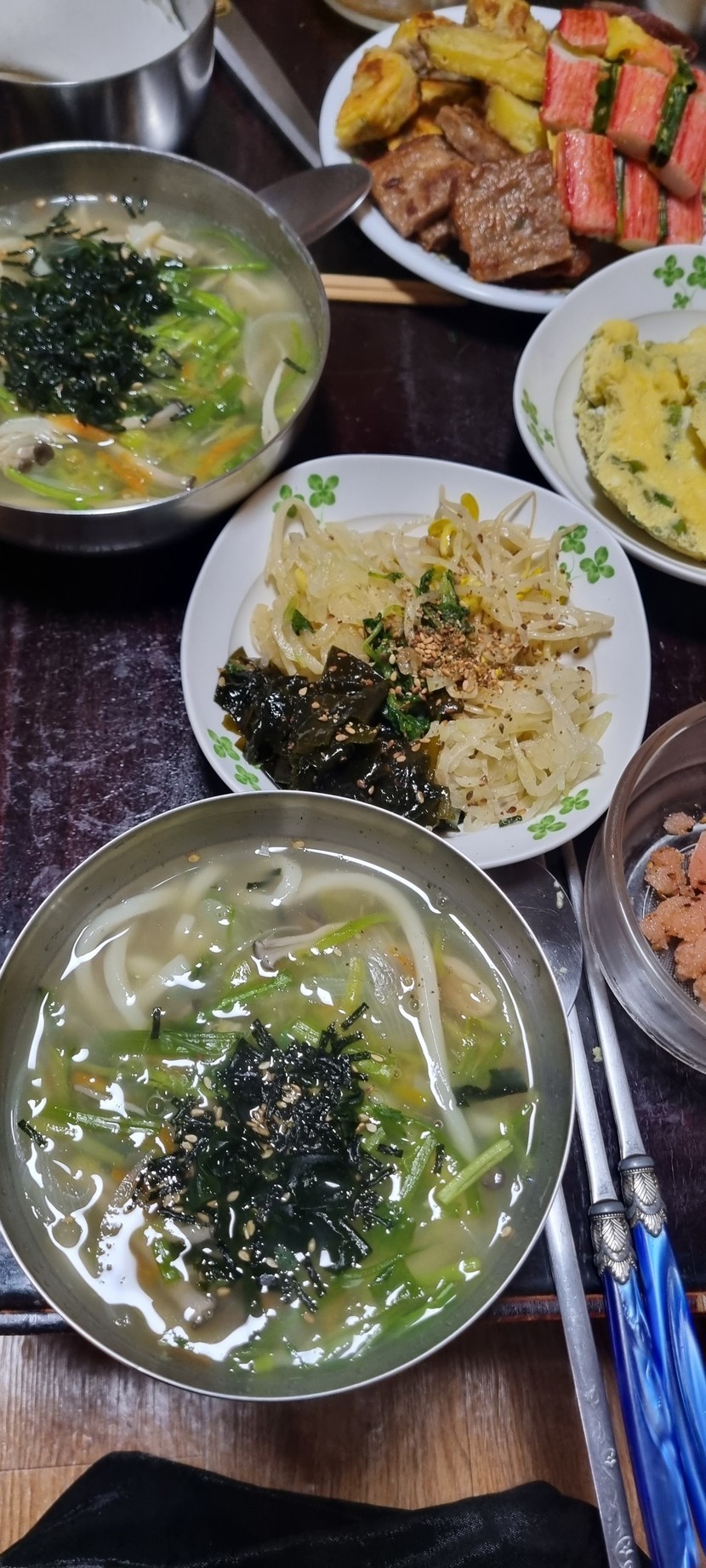 시댁에서 명절음식이 아직 그대로 저녁으로 시원한미나리우동으로