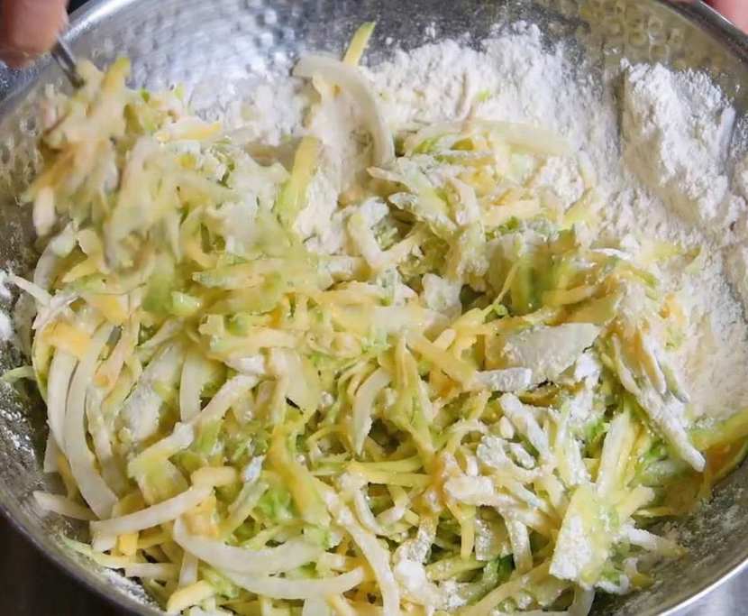 우선, 애호박 1개와 양파 1/4개, 튀김가루 1컵, 꽃소금 2g을 준비하자. 그러면 준비는 끝난다. 별도의 반죽물도 필요 없다. 애호박을 최대한 얇게 채 써는 것이 출발점이다. 얇을수록 익는 속도가 빨라지고 수분이 균일하게 빠진다. 여기에 양파를 더하면 단맛이 자연스럽게 보완된다.