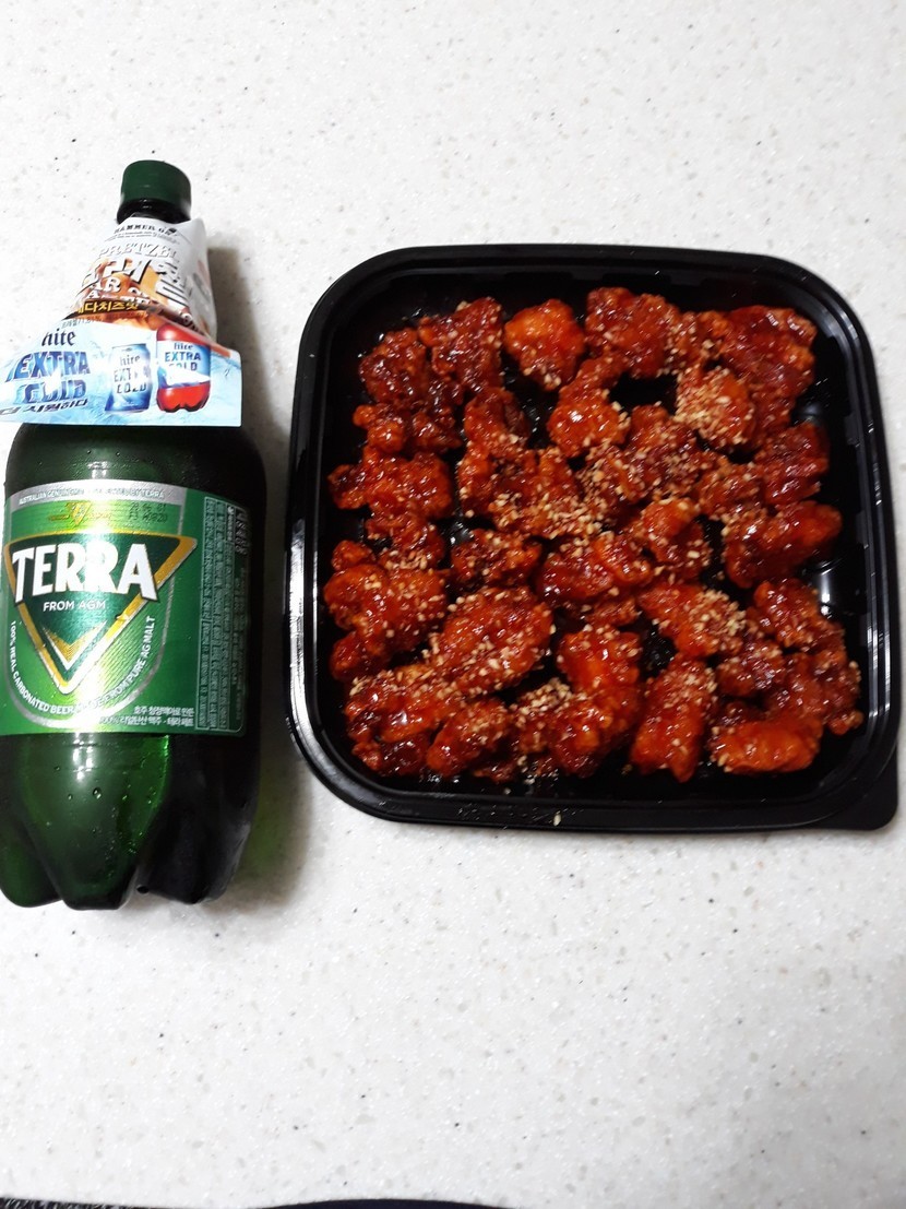 오늘의 야식은 시원한 맥주에 닭강정이요~🤣
