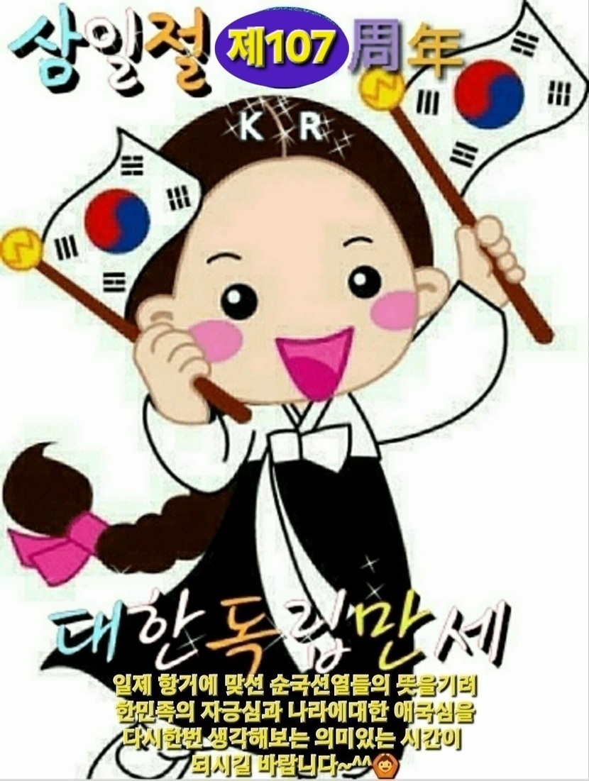 26.03.01 87 읽음 26년.3월1일 107회 삼일절~♡ Sundukbong 구독하기 5 10 콘텐츠의 수익 4 1919년 3월1일 대한독립만세를 부른 순국선열들을 기리며~~^^태극기를 달고 내다보니 태극기를 단 집이 별로 없어서 안타깝네요~~^^온국민들이 순국선열들의 뜻을 기리고 나라사랑하는 애국심을 다시한번 생각하는 시간이 되길 바라며~~^^온국민이 나라를 위해 희생하신 순국선열께 감사하고 나라사랑하는 마음으로 태극기를 많이 달았으면 하는 바램입니다~~♡♡ 10 0 / 300 입력