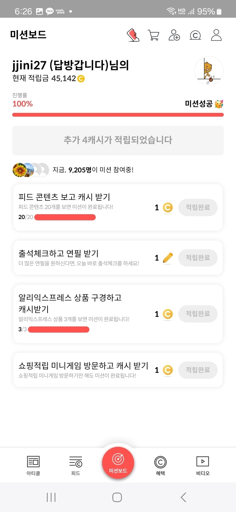 26.03.04 129 읽음 3월 4일 오늘의 미션보드 완료 jjini27 (답방갑니다) 구독하기 39 38 콘텐츠의 수익 5 오늘의 미션보드 완료후 4캐시 받았네요 수요일아침 활기차게 시작해봐요 오늘도 활짝 ^_______________^. 38 0 / 300 입력