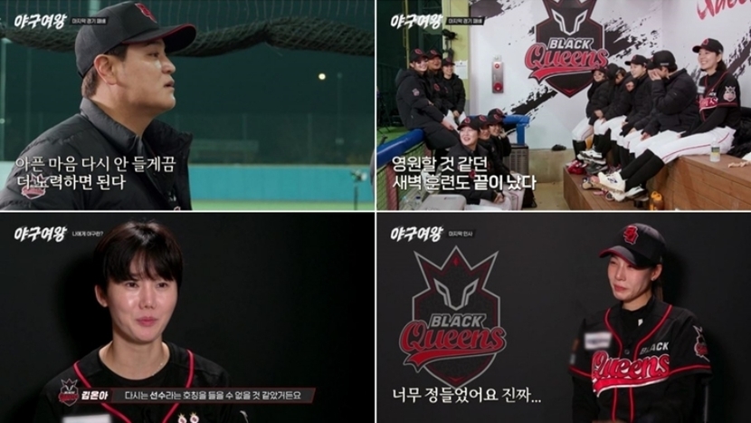 지난 3일 방송된 채널A ‘야구여왕’ 최종회에서는 ‘레전드 선출’ 김민지-김보름-김성연-김온아-박보람-박하얀-송아-신소정-신수지-아야카-이수연-장수영-정유인-주수진-최현미가 뭉친 국내 50번째 여자 야구단 블랙퀸즈가 히로인즈와의 최종 8차전에서 역대급 혈투를 벌이는 모습이 그려졌다. 이날 블랙퀸즈는 사전 연습한 ‘견제 사인’에 맞춰 히로인즈의 주자를 완벽하게 잡아내며 한 차원 달라진 모습을 보였지만, 끈질긴 추격에도 불구하고 9:8로 아쉬운 패배를 맛봤다.