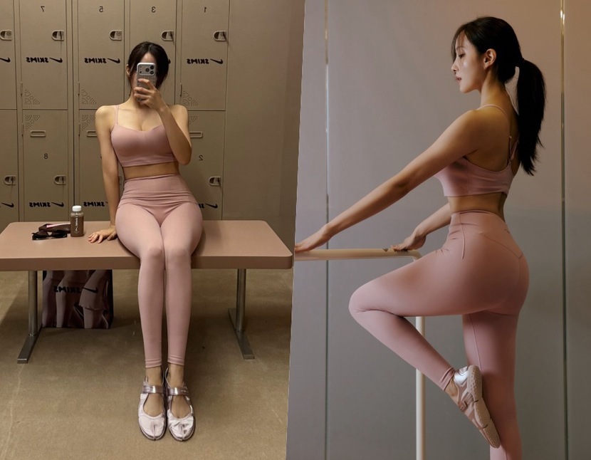 공개된 사진 속 효민은 핑크 컬러 브라톱과 레깅스를 매치한 트레이닝 룩으로 발레 스튜디오를 찾은 모습이다. 군더더기 없는 슬림한 몸매와 탄탄한 라인이 그대로 드러나며 감탄을 자아낸다.