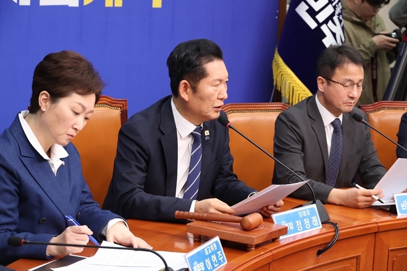 아울러 그는 최근 기름값이 급등한 것에 대해선 “유가 변동이 주유소 가격에 반영되기까지는 통상 2~3주의 시간이 걸린다”며 “전쟁 전 들여온 재고가 있음에도 전쟁이 발발하자마자 담합·가격 조작으로 기름값을 올려 폭리를 취하는 행위는 용납될 수 없다”고 밝혔다. 이에 정 대표는 “민주당은 정부와 힘을 모아 부조리에 단호히 대응할 것”이라고 강조했다.