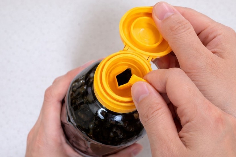 방법도 매우 간단하다. 뚜껑 마개에서 손잡이처럼 튀어나온 부분이 있는 쪽을 용기 입구에 맞춰 끼워 넣으면 된다. 그러면 원래 넓던 입구가 자연스럽게 좁아지면서 간장이 한꺼번에 많이 쏟아지는 현상을 줄일 수 있다. 즉 단순히 버려지는 부속품이 아니라 간장의 유출량을 조절해 주는 보조 장치 역할을 하는 셈이다.