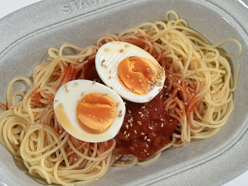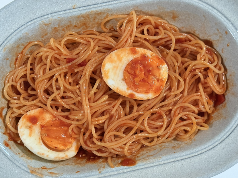 스파게티면은 너무 두꺼울 것 같긴 한데 새로운 면 사기는 좀 그렇고 한번 해먹어보는 정도라면 그냥 스파게티면 써도 무방할거같애! 그대신 면을 푹~~ 삶아야 함. 파스타 봉지에 10분 써있다면 적어도 12분 이상은 삶아야 찬물에 헹궜을때 딱딱해지지 않음!