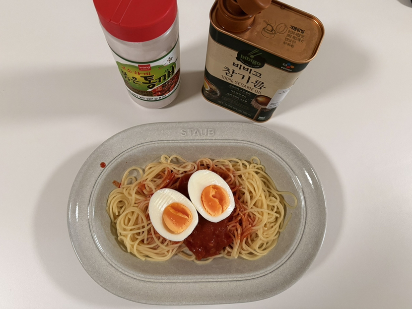 나는 토마토소스 1.5큰술, 초장 4큰술 조금 안 되게 넣었어. 개인적으론 소스가 엄청 넉넉해도 엄청 짜거나 하진 않았는데, 비벼서 먹어보고 개인 입맛에 맞추면 될 것 같아!