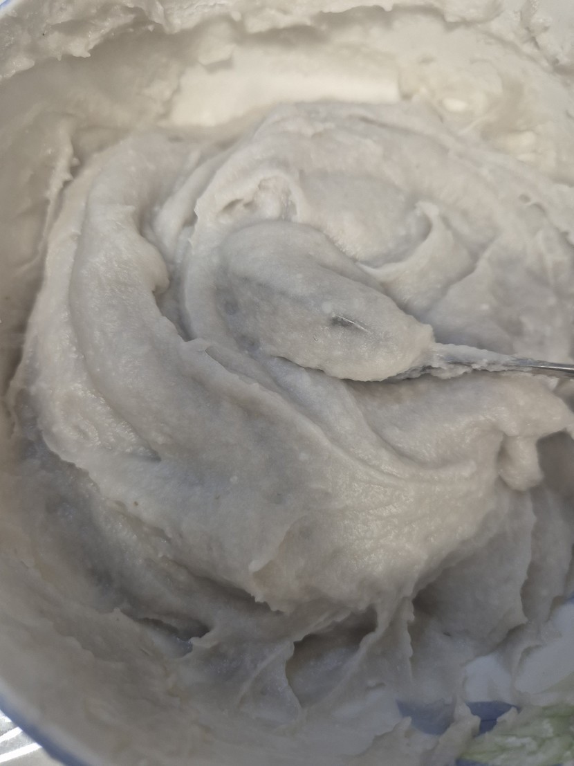 3. (2번)에 감자전분을 2~4스푼정도 넣어 반죽한다 ( 걸쭉해짐을 확인하면서 감자전분 양 조절하기)