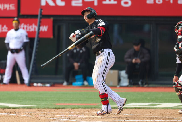 그리고 6회 다시 불을 내뿜었다. 팀이 3-2로 앞선 무사 2루에서 바뀐 투수 KT 이상동의 3구째 131km 슬라이더를 받아쳐 좌측 담장을 넘기는 투런포를 때려냈다.