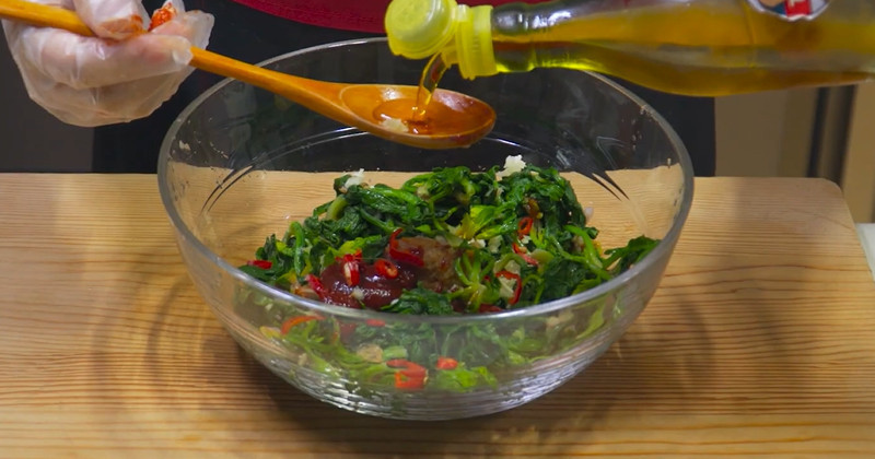 무칠 때는 시금치를 먹기 좋은 길이로 자른 뒤 양념을 넣고 손으로 부드럽게 버무린다. 너무 세게 치대면 잎이 상할 수 있기 때문에 살살 섞는 것이 좋다. 마지막으로 참기름을 한 번 더 둘러주면 고소한 향이 한층 살아난다.