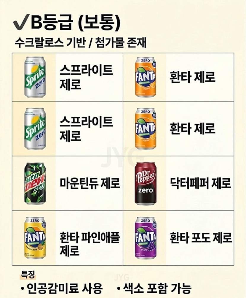제로 음료 등급표