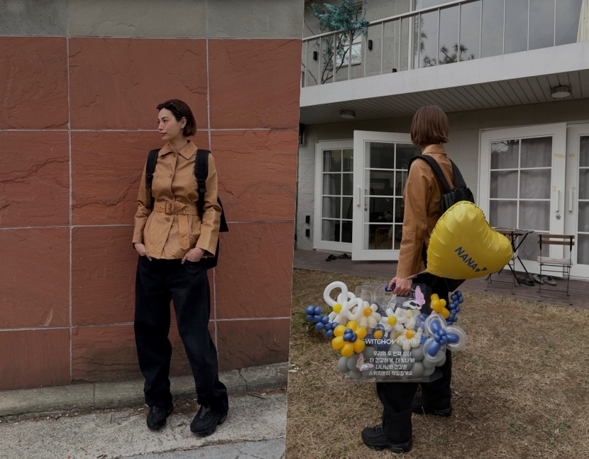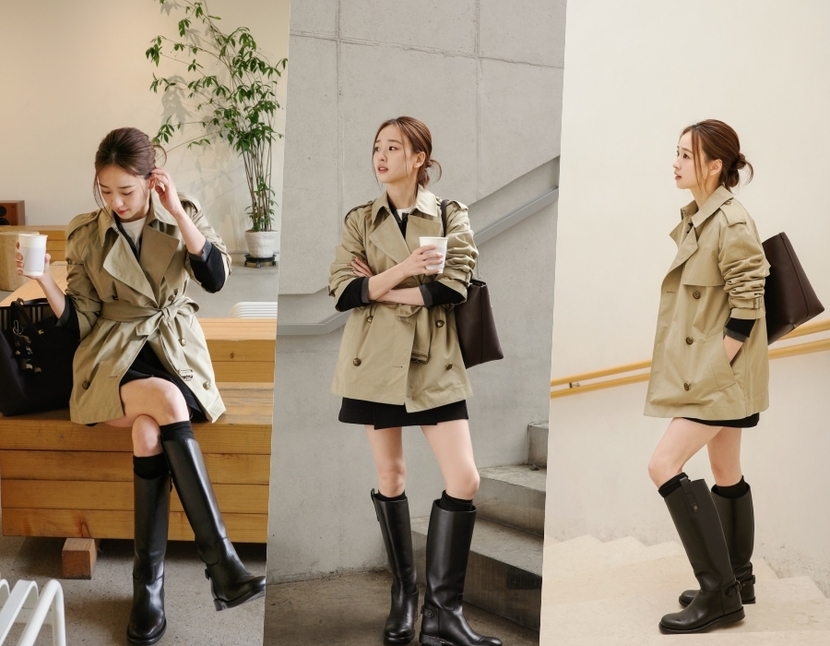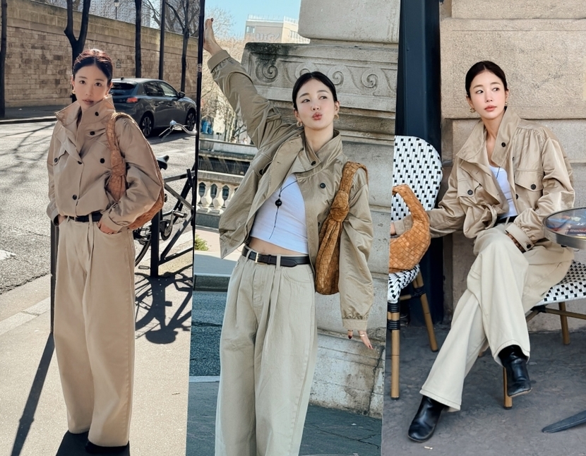 나나는 허리선에서 끝나는 카멜 색상의 트렌치코트를 선택했다. 그는 여기에 백팩, 와이드 팬츠, 운동화를 신고 캐주얼한 분위기를 더했다. 기존 트렌치코트 스타일이 아닌 숏 트렌치코트라서 더 어울리는 스타일이다. 파리에서 다양한 아웃핏을 선보인 기은세가 선택한 패션 중 하나도 숏 트렌치코트 스타일이다. 그는 트렌치코트와 팬츠, 숄더백까지 모두 톤온톤 스타일로 완성해 눈길을 사로잡았다.